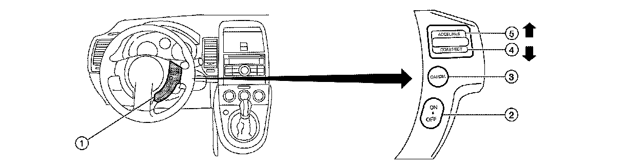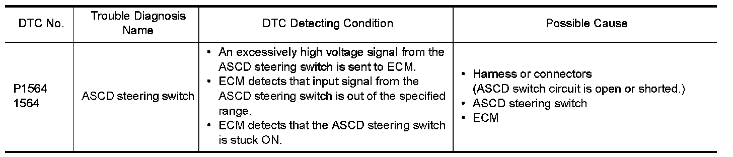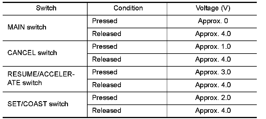 ASCD steering switch has variant values of electrical resistance for each button. ECM reads voltage variation of switch, and determines which button is operated.