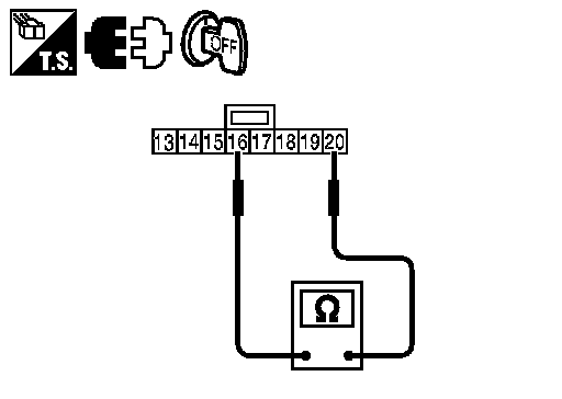 2. Check continuity between combination switch (spiral cable) terminals 16 and 20 with pushing each switch.