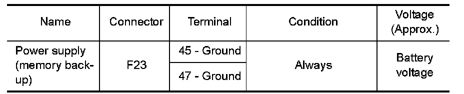 2. Check voltage between TCM connector terminal and ground.