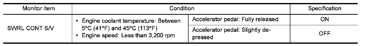 Also, except when idling and during low engine coolant temperature, this system opens the tumble control valve.