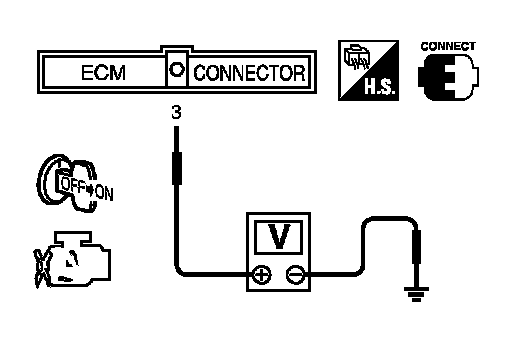Check the voltage between ECM terminal 3 and ground under the following conditions with CONSULT-III or tester.