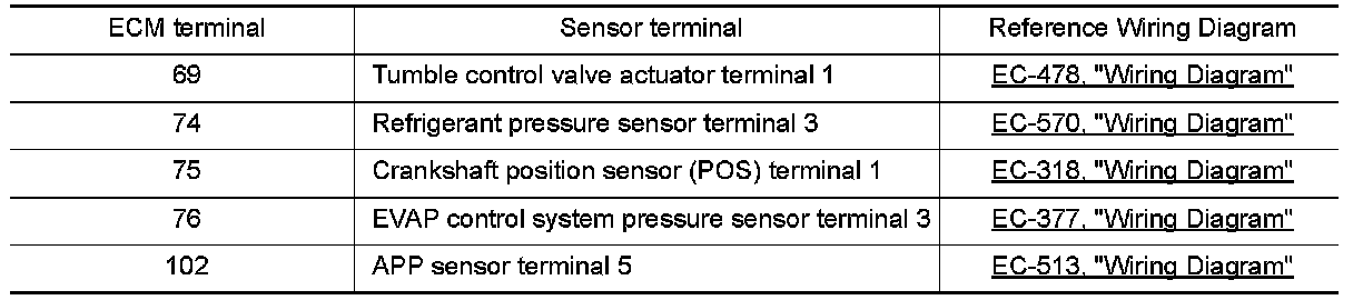 3. Check harness continuity between the following terminals. Refer to Wiring Diagram.