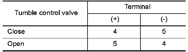 Do not apply 12 V DC continuously for 30 seconds or more. Doing so may result in damage to the coil in tumble control valve motor.