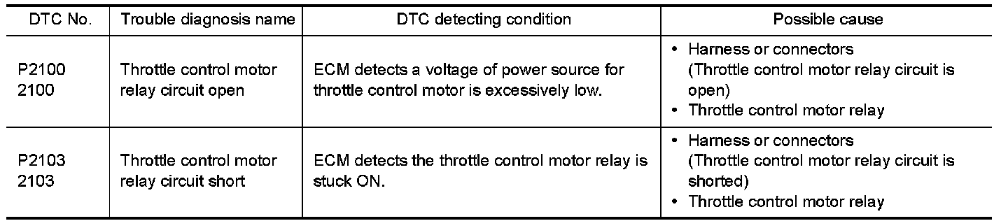 DTC P2100, P2103 THROTTLE CONTROL MOTOR RELAY