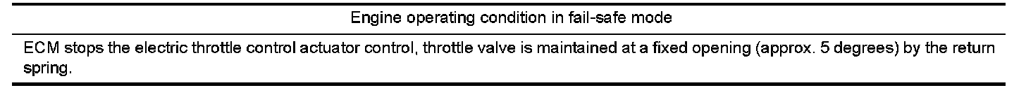 Power supply for the throttle control motor is provided to the ECM via throttle control motor relay. The throttle control motor relay is ON/OFF controlled by the ECM. When the ignition switch is turned ON, the ECM sends an ON signal to throttle control motor relay and battery voltage is provided to the ECM. When the ignition switch is turned OFF, the ECM sends an OFF signal to throttle control motor relay and battery voltage is not provided to the ECM.