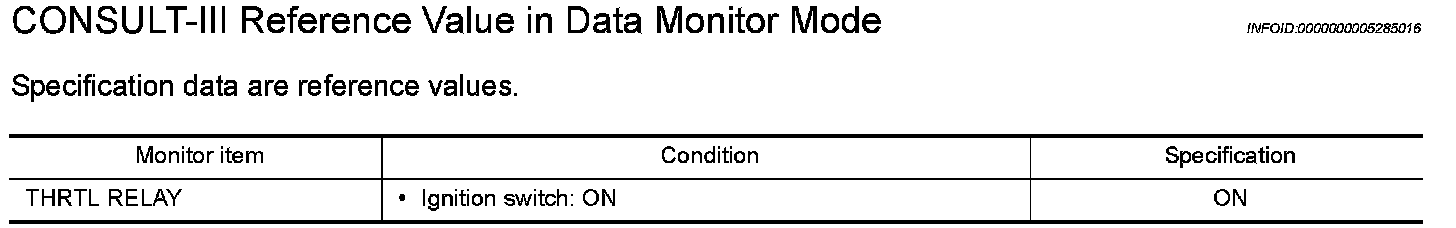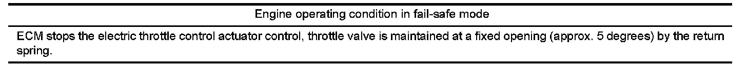 Power supply for the throttle control motor is provided to the ECM via throttle control motor relay. The throttle control motor relay is ON/OFF controlled by the ECM. When the ignition switch is turned ON, the ECM sends an ON signal to throttle control motor relay and battery voltage is provided to the ECM. When the ignition switch is turned OFF, the ECM sends an OFF signal to throttle control motor relay and battery voltage is not provided to the ECM.