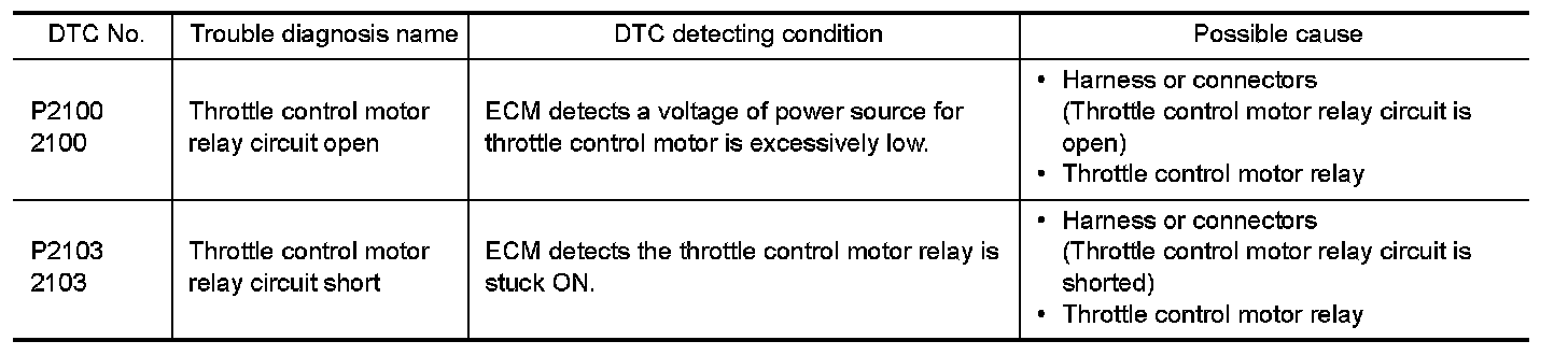 DTC P2100, P2103 THROTTLE CONTROL MOTOR RELAY