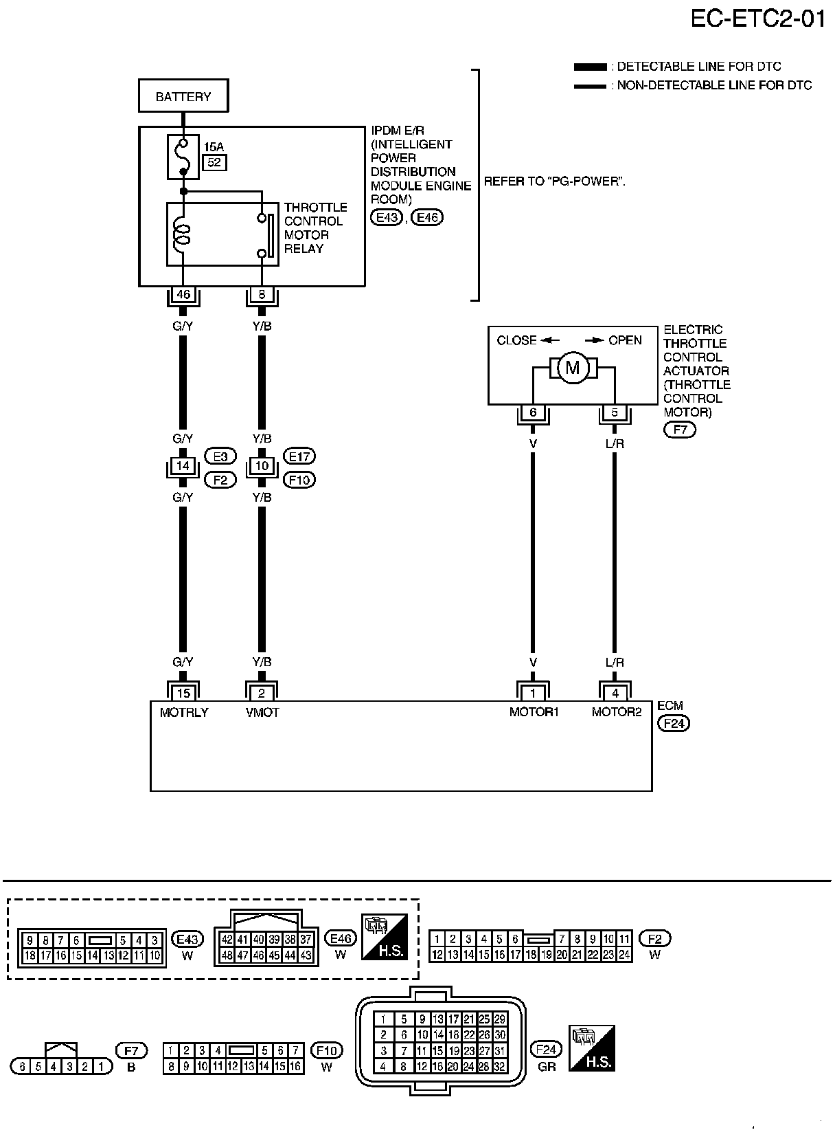 3. Check continuity between ECM terminal 15 and IPDM E/R terminal 46. Refer to Wiring Diagram.