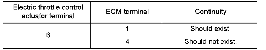 3. Check harness continuity between the following terminals. Refer to Wiring Diagram.