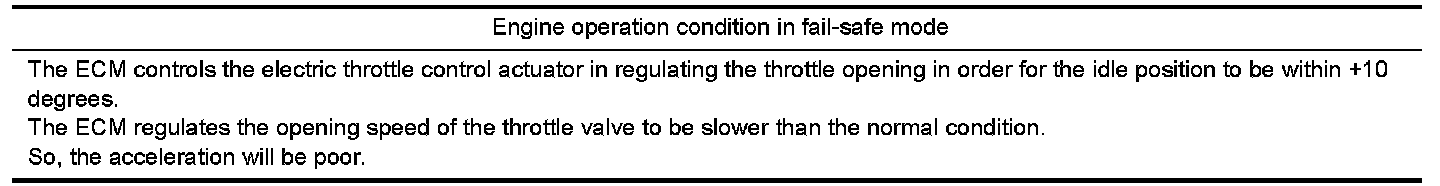 When the malfunction is detected, the ECM enters fail-safe mode and the MIL lights up.
