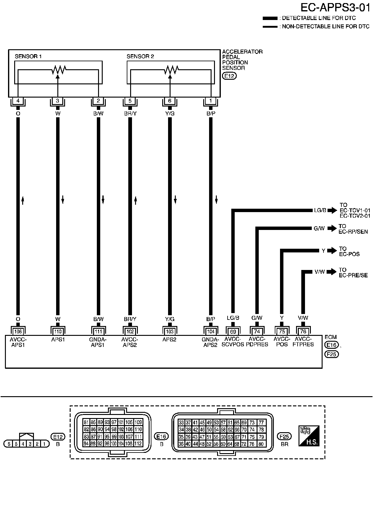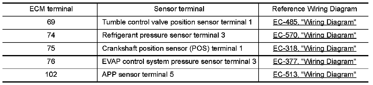 ECM terminal 110 and APP sensor terminal 3, ECM terminal 103 and APP sensor terminal 6. Refer to Wiring Diagram.