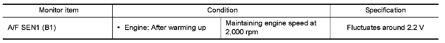 To judge the malfunction, the A/F signal computed by ECM from the A/F sensor 1 signal is monitored not to be shifted to LEAN side or RICH side.