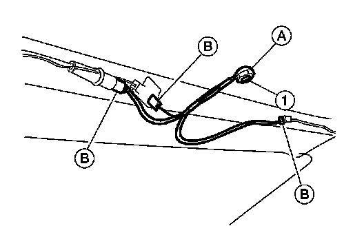 5. Disconnect the roof antenna harness connectors (B).