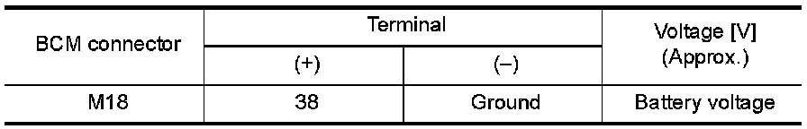 2. Check voltage between BCM connector and ground with CONSULT-III or tester.