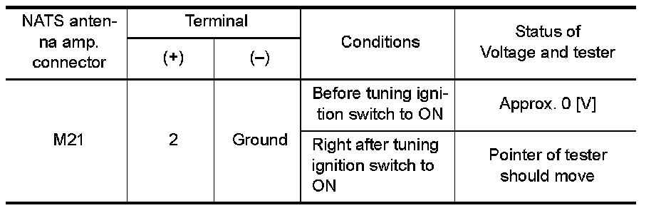 Check voltage between NATS antenna amp. connector and ground with analog tester.