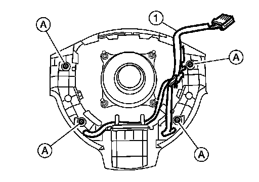 2. Remove the steering wheel audio control switch screws (A) and remove the steering wheel audio control switches (1).