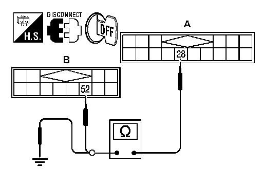 4. Check continuity between satellite radio tuner harness connector B56 (A) terminal 28 and ground.