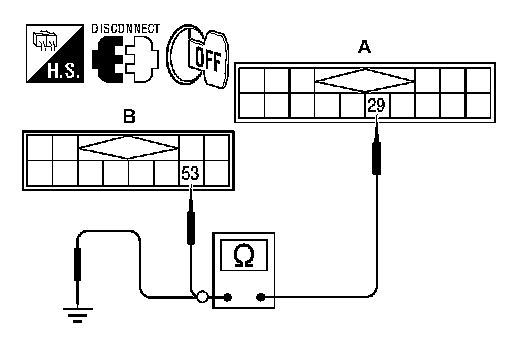 2. Check continuity between satellite radio tuner harness connector B56 (A) terminal 29 and ground.