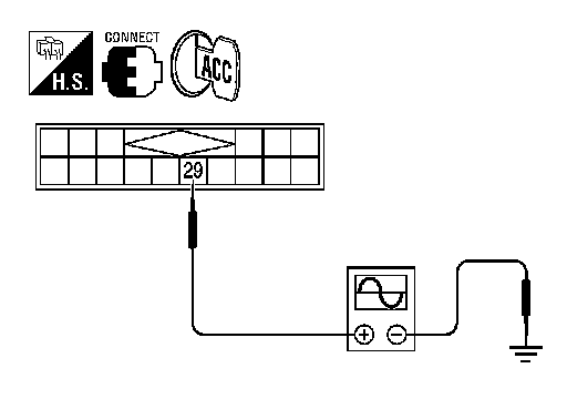 Check signal between satellite radio tuner harness connector B56 terminal 29 and ground with CONSULT-III or oscilloscope.