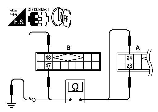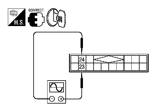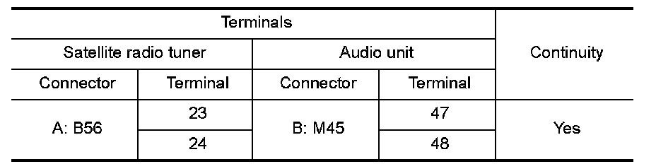 3. Check signal between satellite radio tuner connector B56 terminals 23 and 24 with CONSULT-III or oscilloscope.