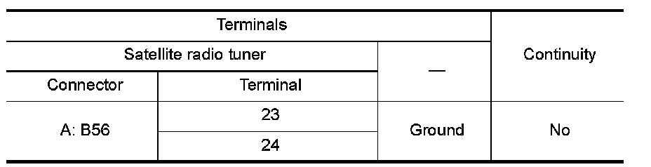 4. Check continuity between satellite radio tuner and ground.