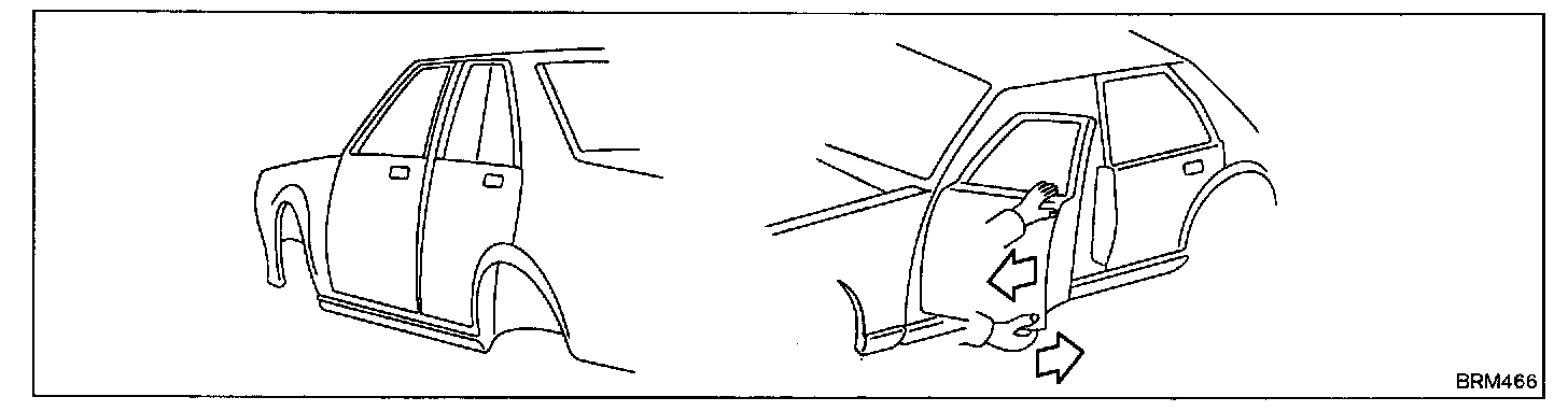 Panel replacement work includes replacement of the front fenders and hood which are installed by bolts, and replacement of rear fenders and the roof which are welded. This section explains panel replacement procedures after adjusting body alignment.