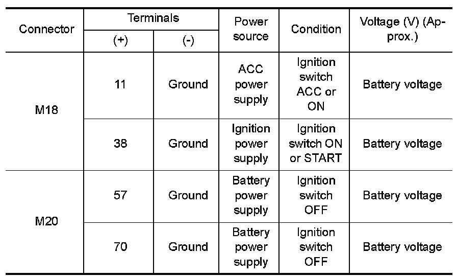 Check continuity between BCM connector M20 terminal 67 and ground.