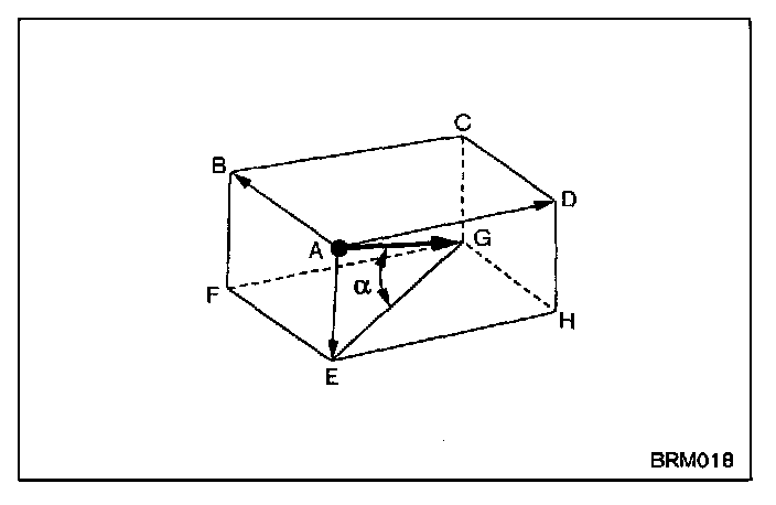 This force can be divided into three-dimensional directions as shown in the figure to the right. The impact force can be divided into AB, AD, and AE.