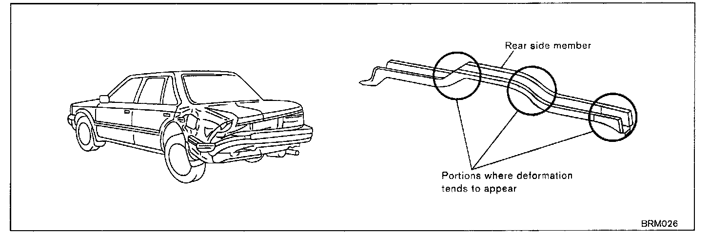 If an impact is applied to the center of the passenger compartment, damage extends to the floor. The wheelbase also becomes misaligned.