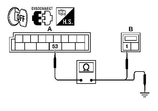 3. Check continuity between BCM connector M19 (A) terminal 53 and ground.