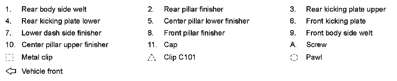 1. Remove center pillar lower finisher. Follow the CENTER PILLAR LOWER FINISHER procedure.