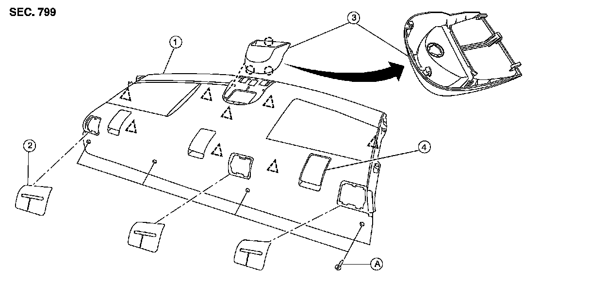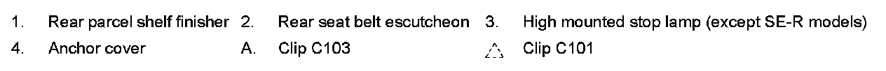 1. Release the clips and remove the high mounted stop lamp from the rear parcel shelf finisher.