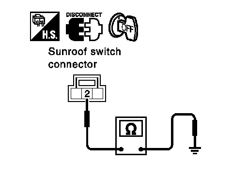 Check continuity between sunroof switch connector R27 terminal 2 and ground.