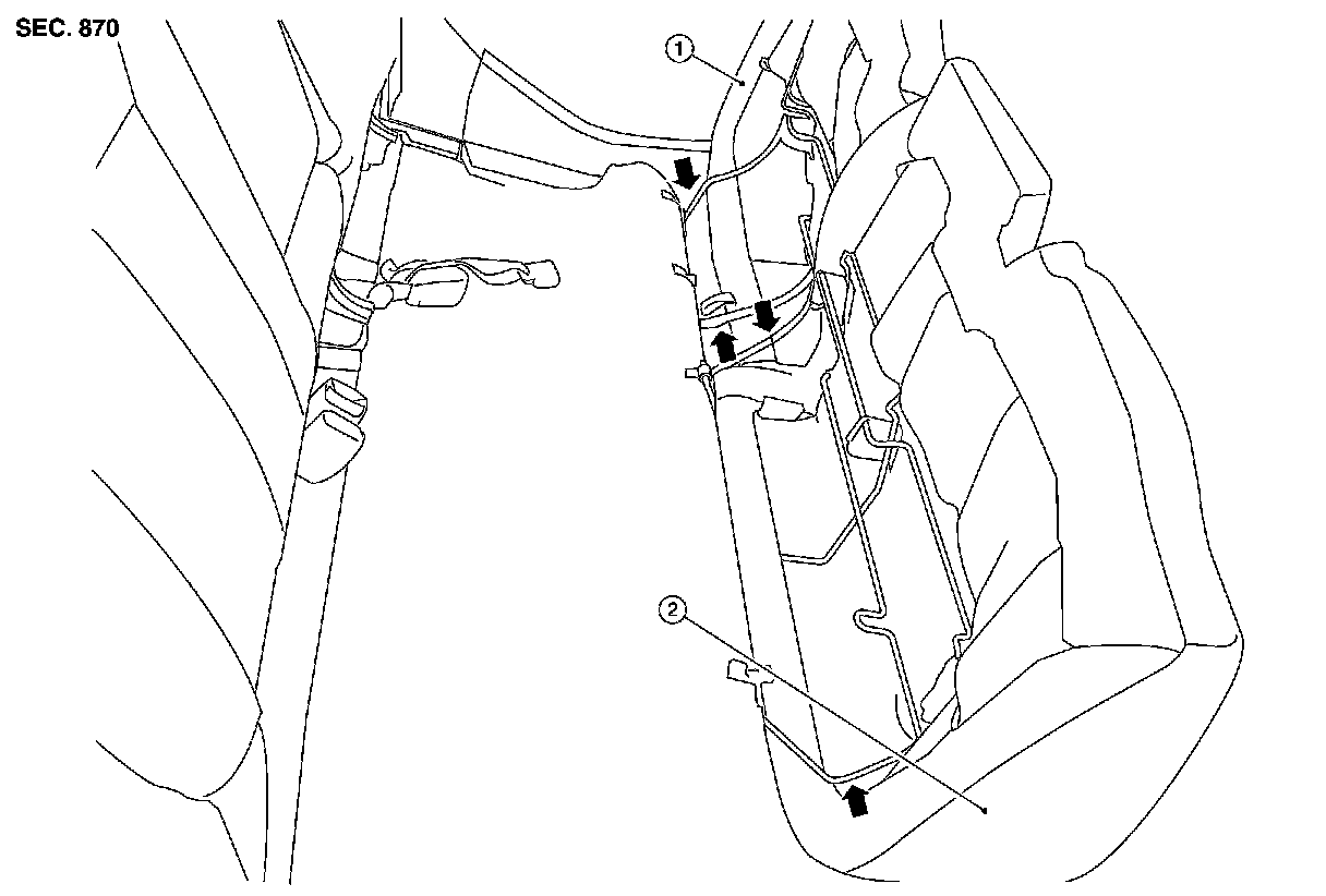 2. Remove the lower seatback mounting bolts from the right rear seat back brackets.