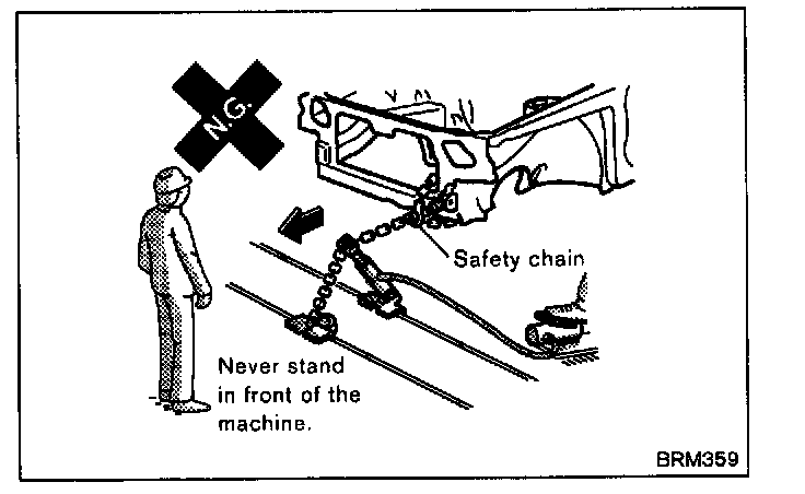 - To prevent danger any excessive slack in the safety chain must be taken up and properly wound.