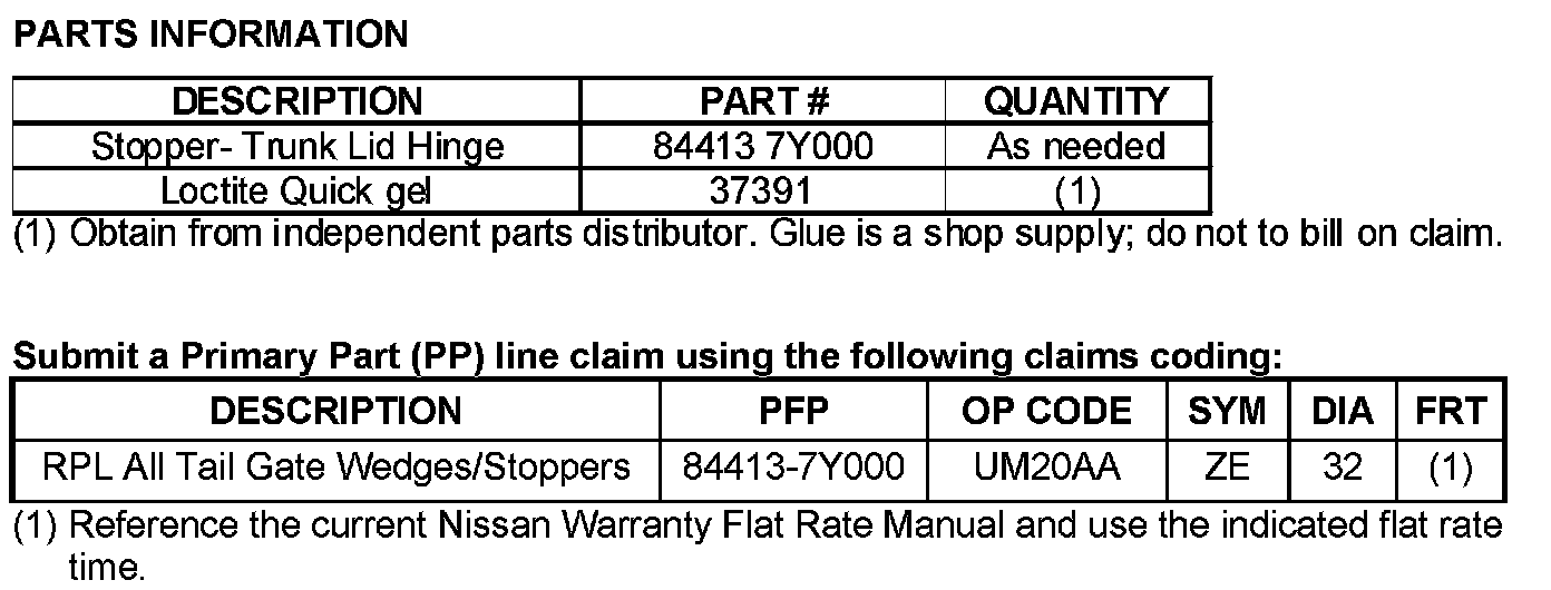 2007-2012 SENTRA; TRUNK HINGE CLIP MISSING, OR TRUNK NOT FLUSH WITH FENDER
