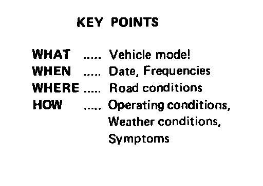 - Ask the customer about what symptoms are present under what conditions. Use this information to reproduce the symptom while driving.