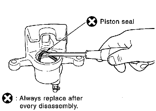 - While removing caliper, do not depress brake pedal because piston will pop out.