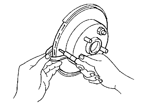 1. Secure disc rotor to the wheel hub in two or more positions, using wheel nuts.