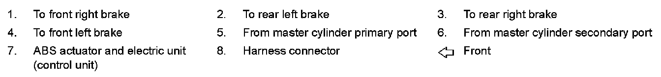 5. Loosen brake tube flare nuts using suitable tool, then remove brake tubes from ABS actuator and electric unit (control unit).
