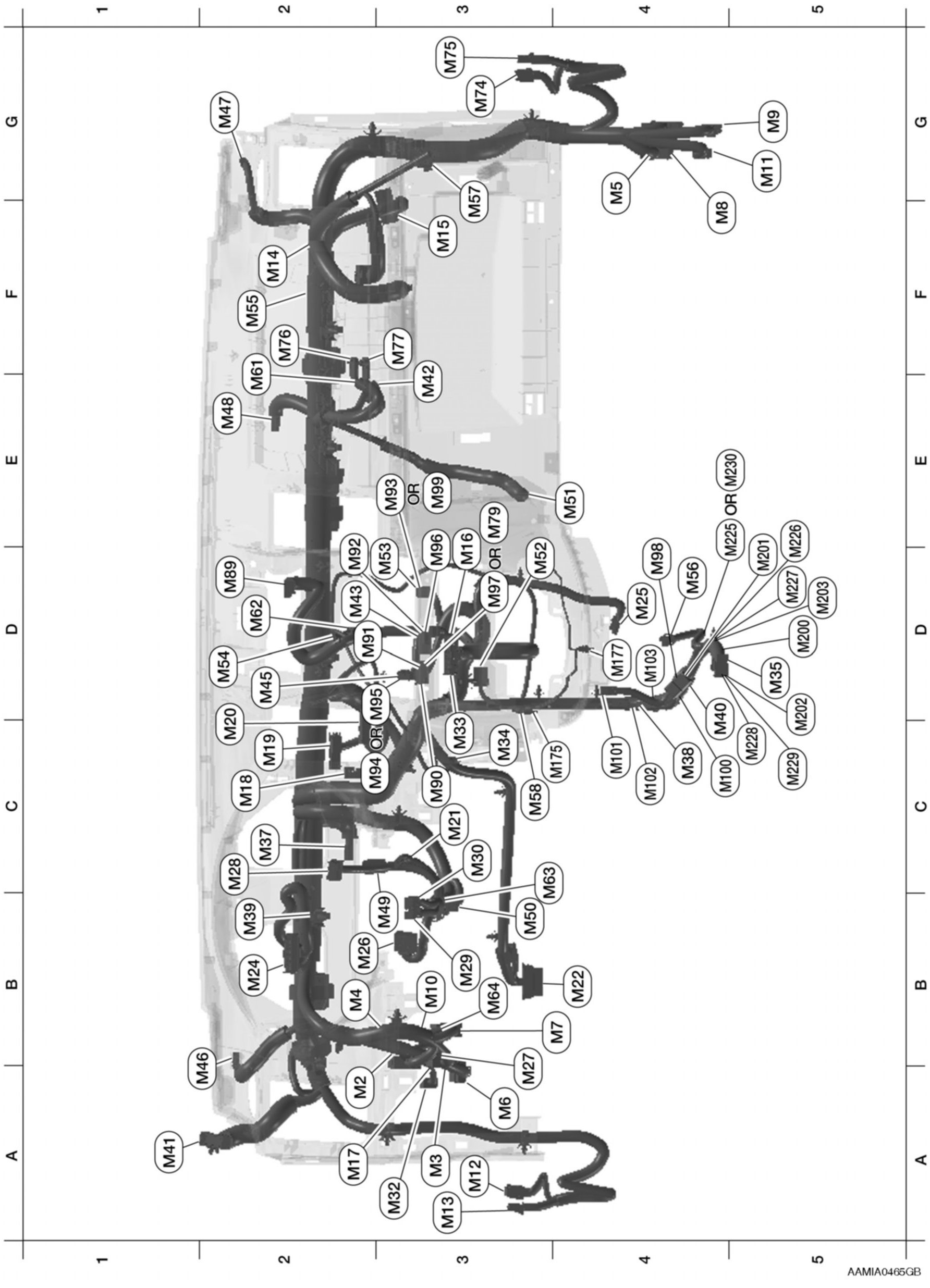 The following Harness Layouts use a map style grid to help locate connectors on the drawings:
