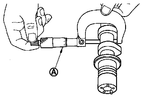 1. Measure the camshaft cam height with a micrometer (A).