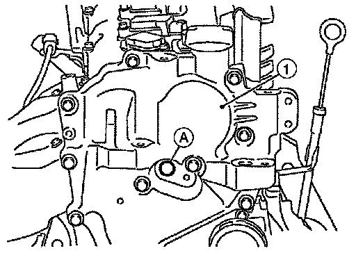 6. Crank engine, and then make sure that engine oil comes out from intake valve timing control solenoid valve hole (A). End crank after checking.
