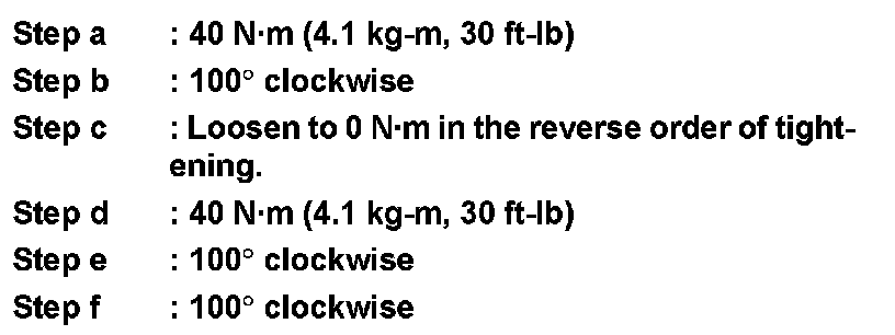 If cylinder head bolts re-used, check their outer diameters before installation. Follow the "Cylinder