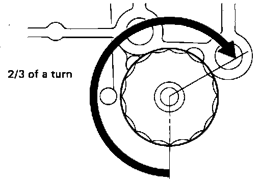 c. Screw oil filter manually until it touches the installation surface, then tighten it by 2/3 turn. Or tighten to specification.