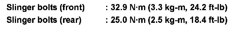 - Attach proper slingers and bolts described in PARTS CATALOG if engine slingers are not equipped.