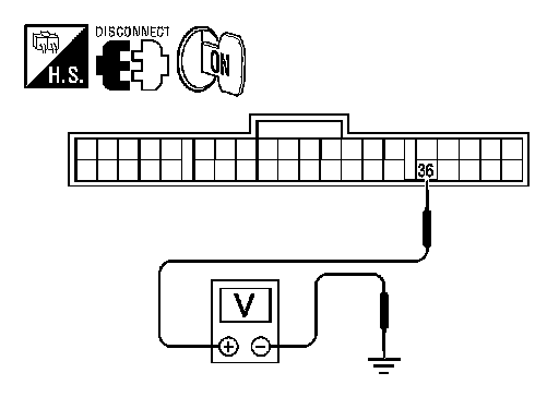 2. Check voltage between front air control harness connector M33 terminal 36 and ground.