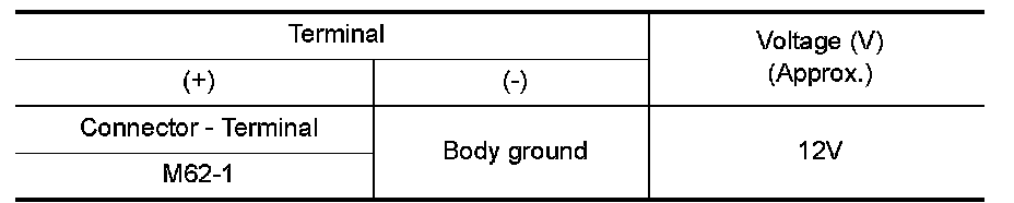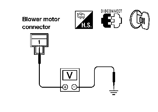 4. Check voltage between blower motor harness connector M62 terminal 1 and ground.