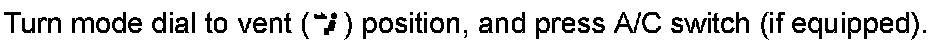 2. Turn mode dial to vent ( ) position, and press A/C switch (if equipped).