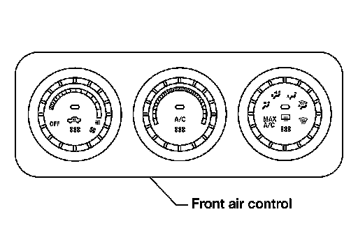 The front air control has a built-in microcomputer which processes information sent from the temperature control dial, and various switches needed for air conditioner operation. The air mix door motor, mode door motor, intake door motor, blower motor and compressor are then controlled.